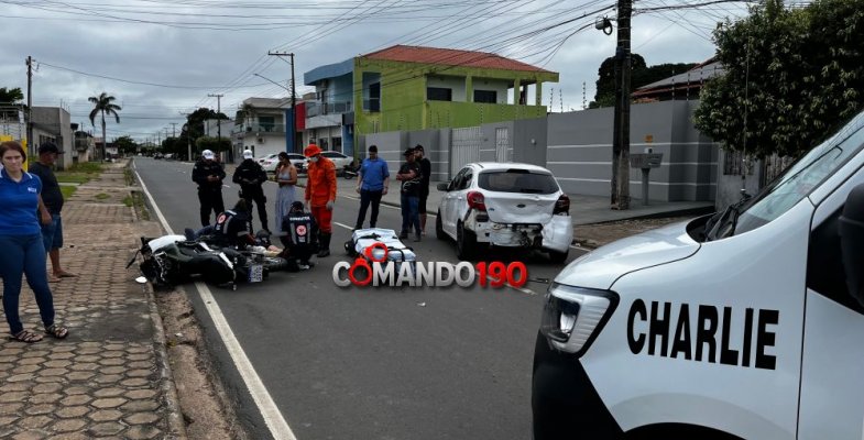 Acidente envolve motociclista e carro parado em sinal na BR 364 em Ji Paraná
