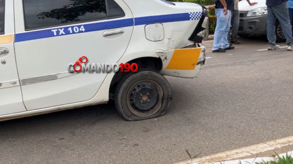 Um acidente de trânsito foi registrado na manhã desta terça-feira na Avenida Ji-Paraná. Segundo informações apuradas no local, um veículo táxi trafegava pela via quando acabou sendo atingido na traseira por uma motocicleta.