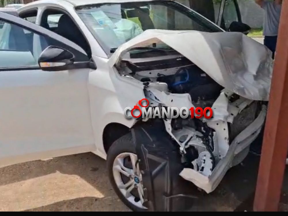 Com o forte impacto, o Fiat Argo saiu da pista, subiu a calçada e colidiu violentamente contra o pilar de um estabelecimento comercial situado na esquina. A violência da batida foi tão intensa que provocou o acionamento dos airbags de ambos os veículos envolvidos.