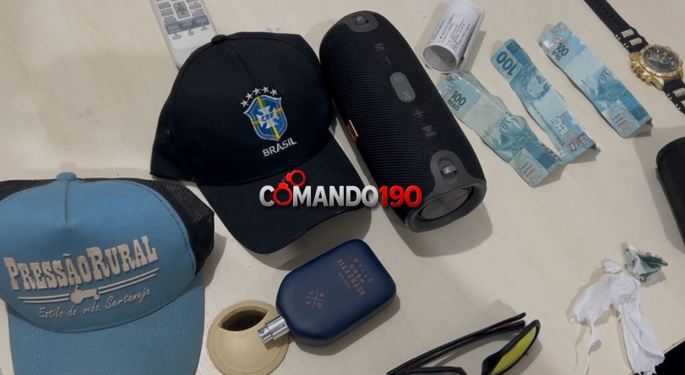 Durante a revista pessoal, foram encontrados R$ 300 em dinheiro, uma caixa de som, duas porções de substância semelhante à cocaína e outros objetos que, conforme o próprio suspeito identificaram como Wanderson Rodrigues, são provenientes de furtos.