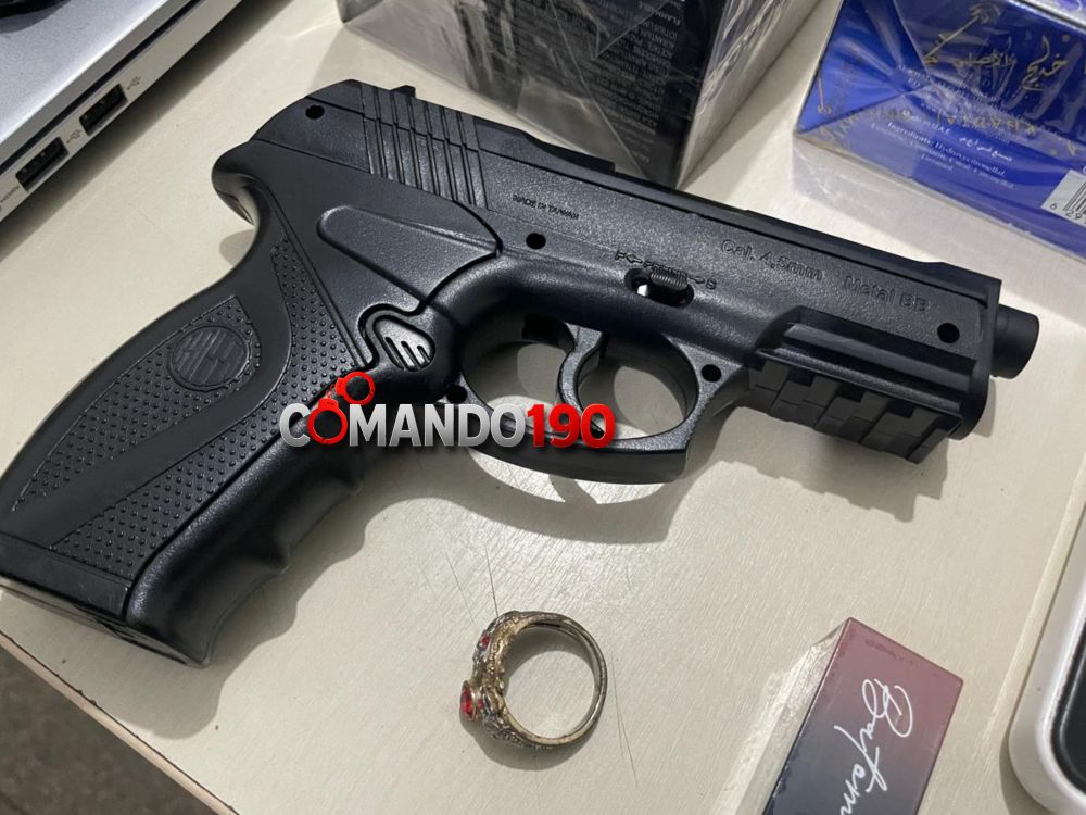 A mulher informou ainda que a droga seria entregue por Daniel, que estaria conduzindo um veículo Ford Fiesta branco. Com apoio de outra equipe, os policiais localizaram e abordaram o automóvel. Durante a revista, foi encontrado com Daniel um simulacro de arma de fogo, além de porções de substância entorpecente, possivelmente pasta base, já fracionadas e prontas para comercialização.