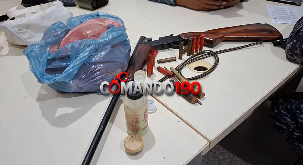 Diante dos fatos, a arma, as munições e a carne do animal foram apreendidas. O morador foi conduzido para a Unidade Integrada de Segurança Pública (UNISP), onde a ocorrência foi registrada para as providências cabíveis.