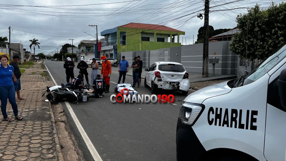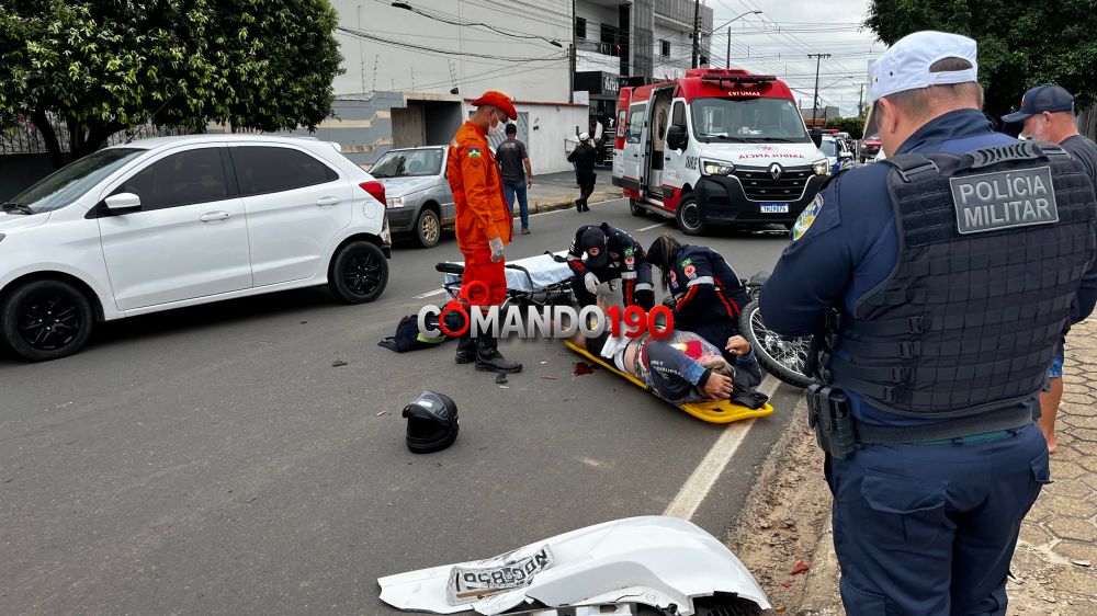Com a força do impacto, o motociclista foi arremessado ao solo e sofreu fratura, sendo considerado em estado grave.