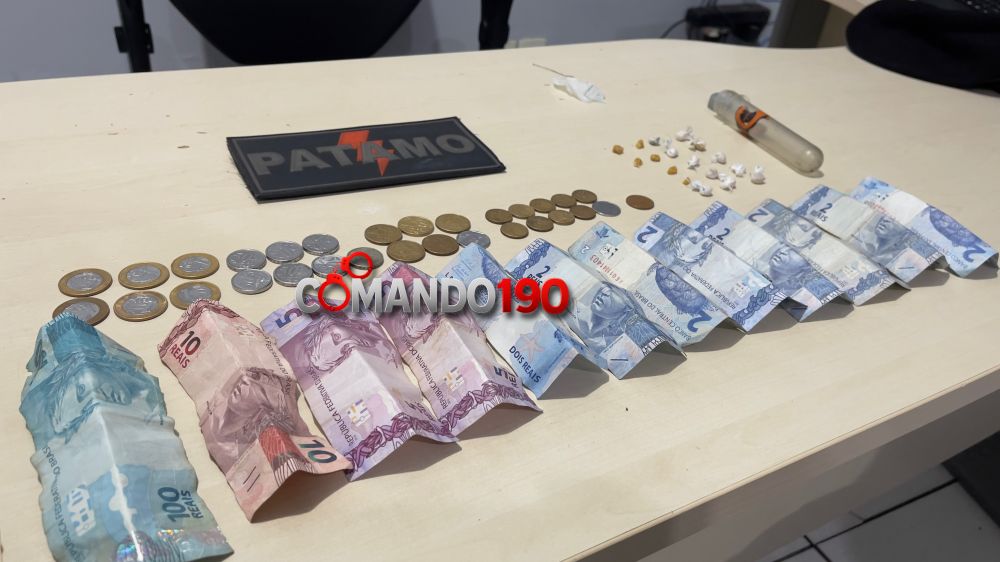Durante a busca pessoal, foi encontrada uma porção de substância análoga ao crack, além de R$ 148,05 em dinheiro, em notas e moedas fracionadas, característica comum em situações de tráfico de drogas. Em uma varredura minuciosa no local, os policiais localizaram um buraco com a terra recentemente remexida, exatamente onde o suspeito havia sido visto. Dentro dele, havia um recipiente plástico contendo 17 pedras de crack prontas para comercialização.
