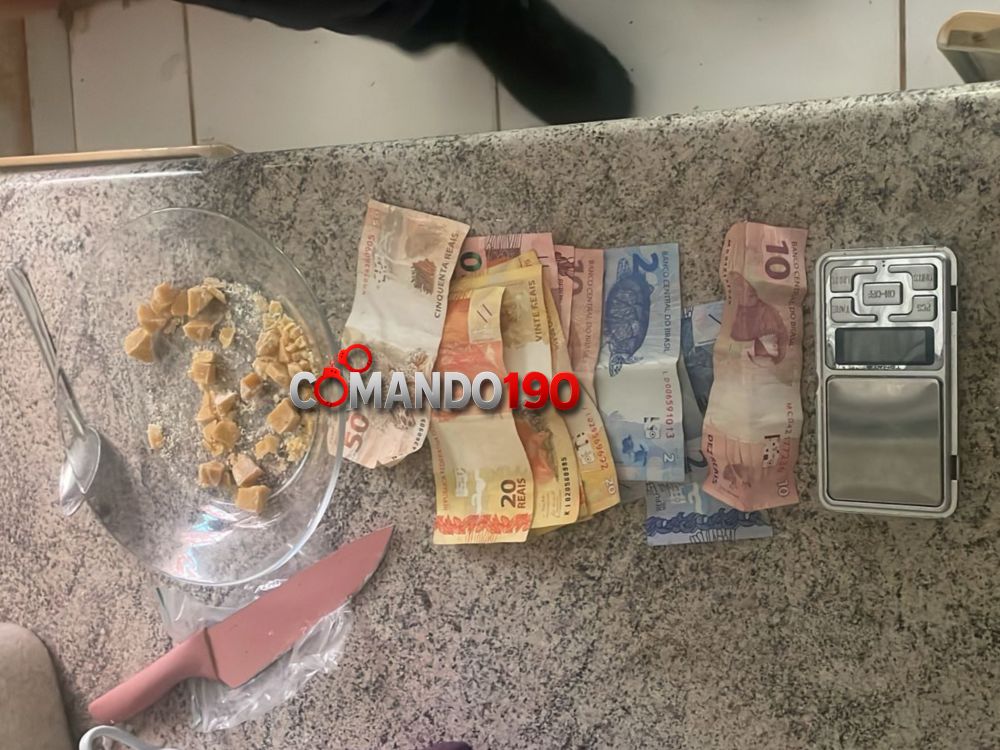 A ação foi comandada pelos sargentos PM Teodoro e D. Moura, com apoio dos cabos PM Siqueira e Tupan. Durante as buscas, os policiais encontraram 20 porções de substância semelhante à pasta base de cocaína, uma balança de precisão, duas munições e R$ 188,00 em espécie.