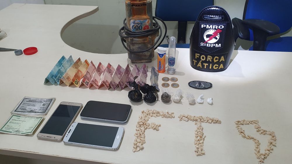 Durante a rápida ação, os militares conseguiram apreender mais de 300 pedras de Crack, já fracionadas, várias parangas de Cocaína e Maconha e uma certa quantia em dinheiro.