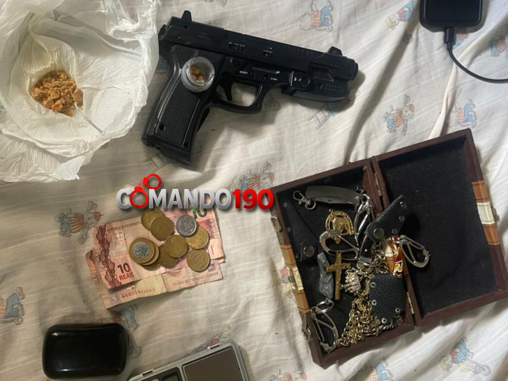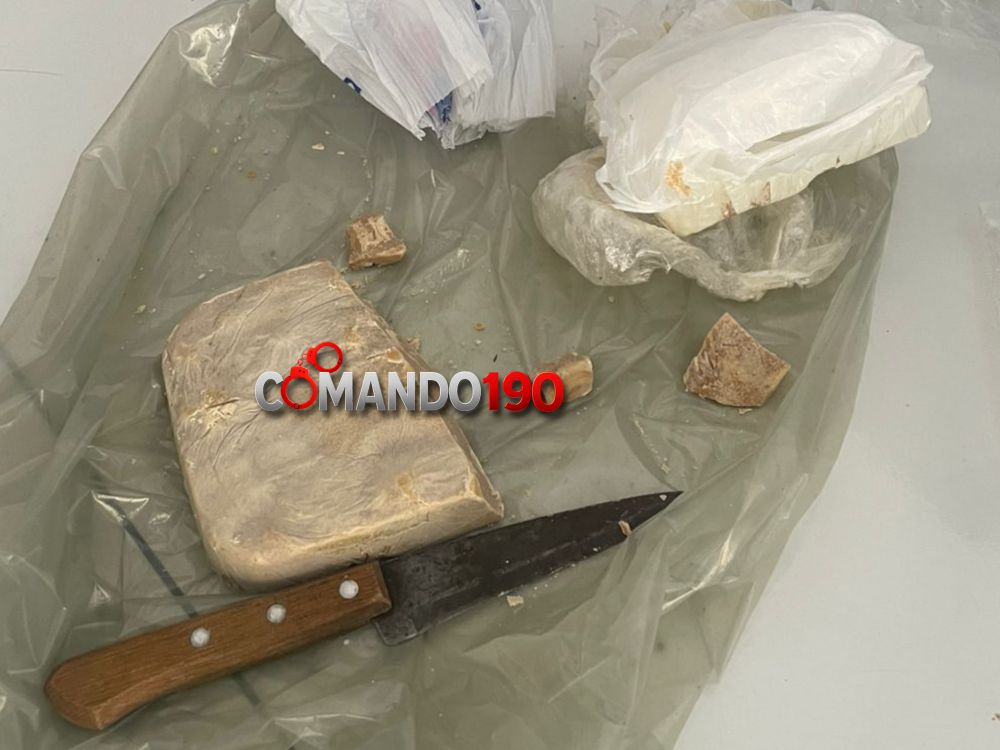 Durante a ação, os policiais encontraram várias pedras de crack, meia barra de pasta base de cocaína pesando cerca de 400 gramas, um simulacro de arma de fogo, dinheiro e diversos objetos de procedência duvidosa.