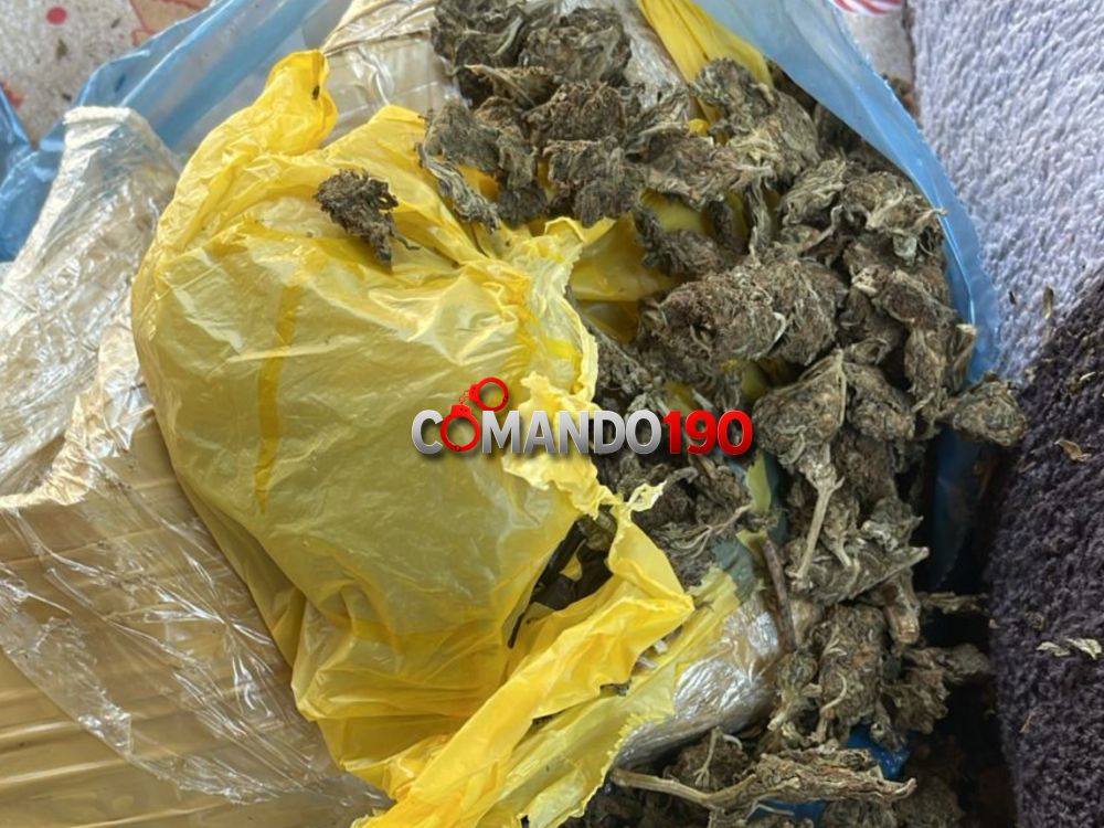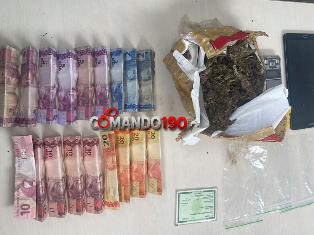 Durante a revista no local, foram encontradas porções de maconha, dinheiro trocado e produtos de procedência duvidosa. Todo o material foi apreendido e apresentado na Unidade Integrada de Segurança Pública (Unisp) para as devidas providências.