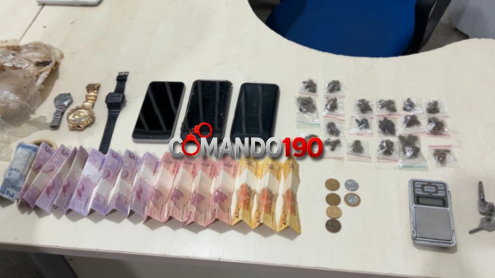 Durante as buscas, também foram encontrados uma balança de precisão, três relógios e a quantia de R$ 394,50 em dinheiro, além de aparelhos celulares que, conforme apurado, seriam utilizados para negociar a venda dos entorpecentes.