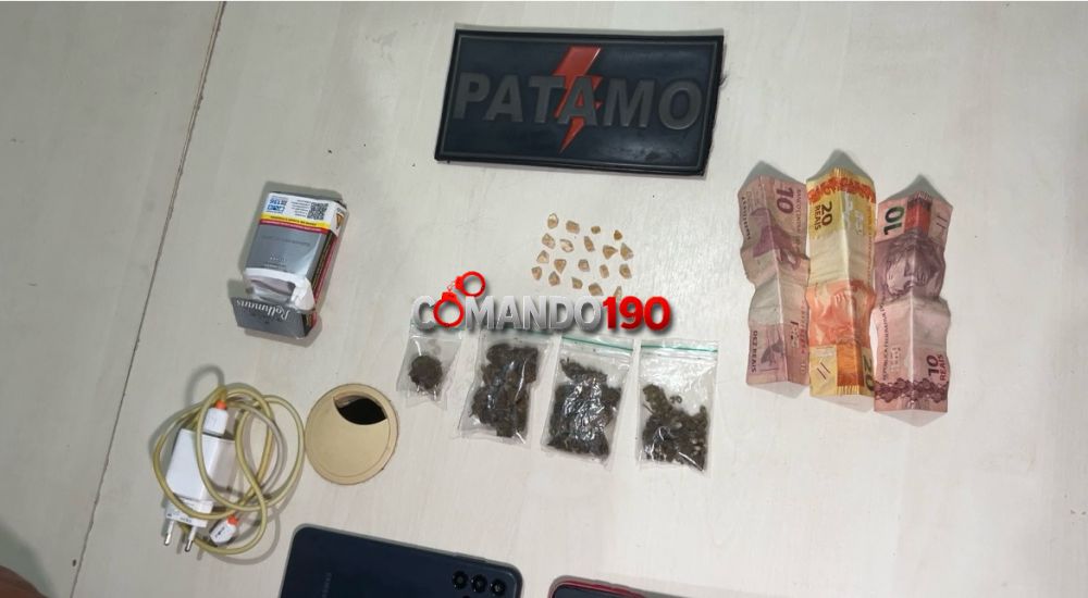 Após a detenção, os policiais retornaram ao ponto inicial da abordagem, onde localizaram mais entorpecentes. No total, foram apreendidos 19 pedras de crack, quatro invólucros de substância semelhante à maconha, R$ 40 em dinheiro, dois aparelhos celulares e um carregador.