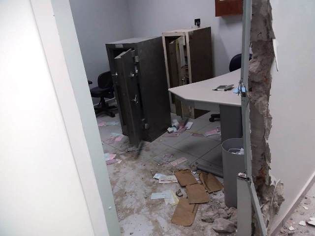 Os criminosos conseguiram abrir um buraco na parede dos fundos da agência, arrombaram várias portas e chegaram à sala de cofres, e causaram destruição e muita bagunça no interior da agência. Eles levaram duas armas dos vigilantes, a gerência não informou se houve furto de dinheiro.