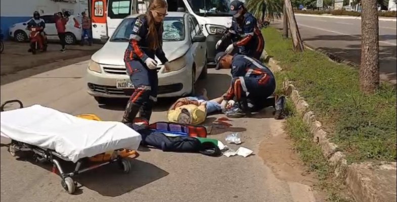 Motociclista fica ferido após colisão com carro em cruzamento de Ji-Paraná